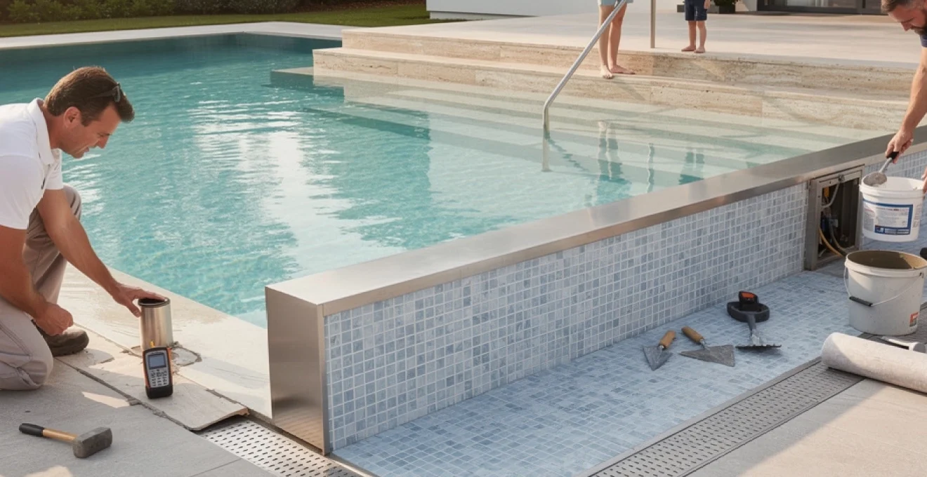 Outre la protection mécanique, ces profilés facilitent la gestion des joints périphériques et des points de dilatation, en offrant un support rigide et stable pour le mortier-colle et les joints époxy. Ils contribuent également à l’hygiène en limitant les zones de rétention d’eau et les recoins difficiles à nettoyer. Pour un résultat homogène, vous pourrez coordonner la finition (brossée, satinée, mate) avec les autres éléments métalliques de la piscine : échelles, buses inox, douches et garde-corps.